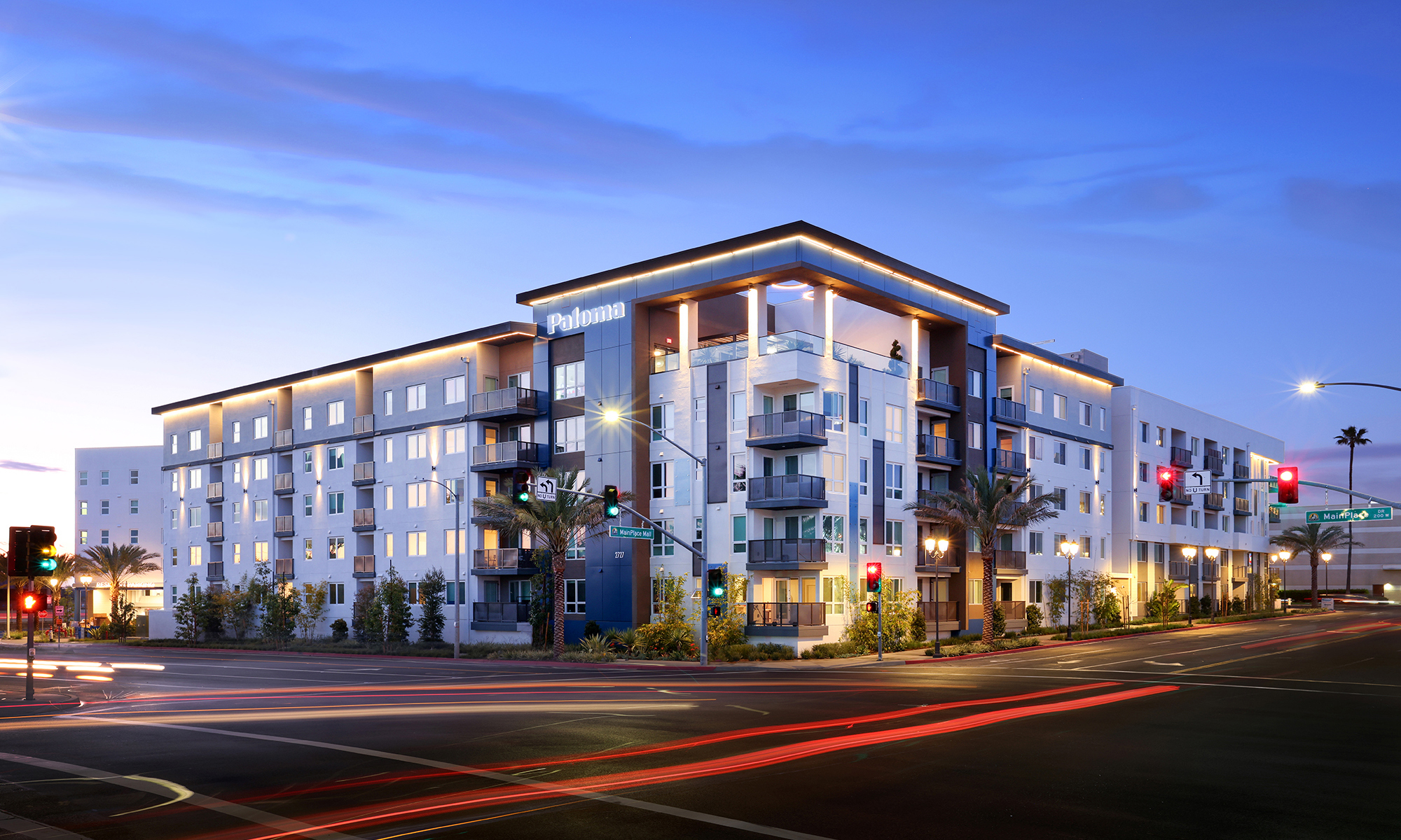 The new high-density mixed-use apartment project on a 5.13 Acre site in Mission Valley, San Diego, provides 267 residential units and 10 shopkeeper units. The Type III apartment building wraps a 5-story Type I parking