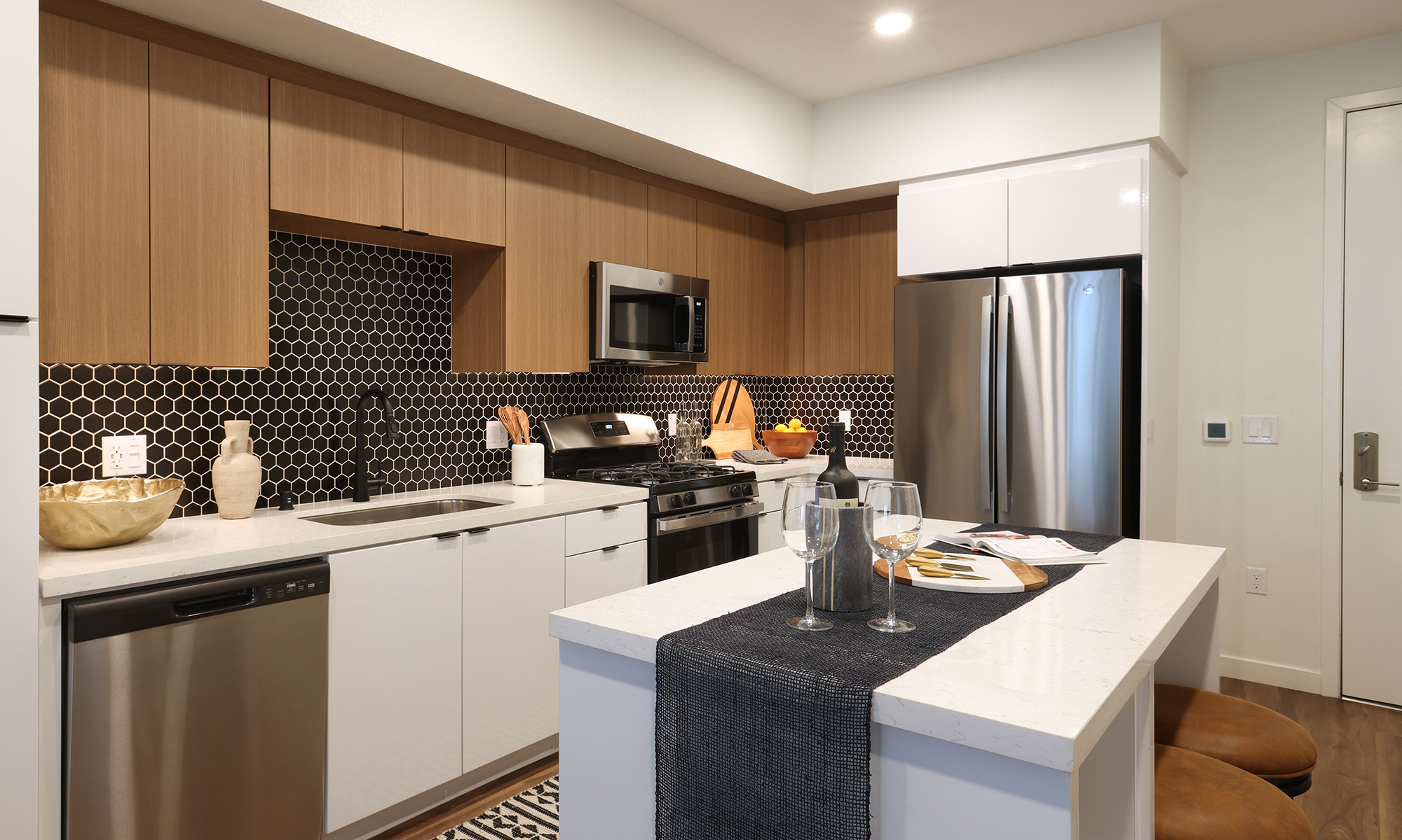 The Asher is comprised of two residential buildings on a 12.6 acre site, divided by a Linear Green which serves as a publicly-accessible, park like space in the city of Fremont. The Linear Green joins