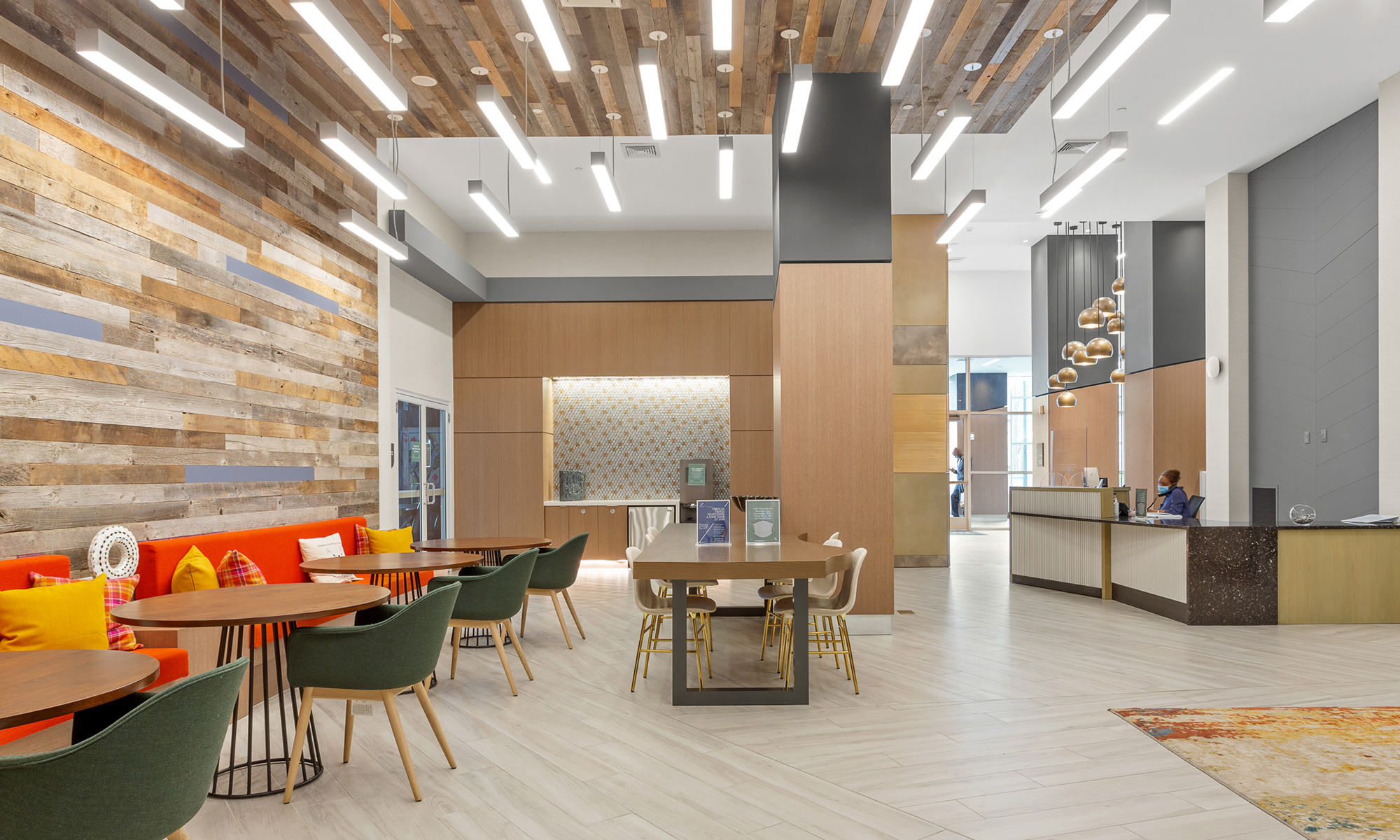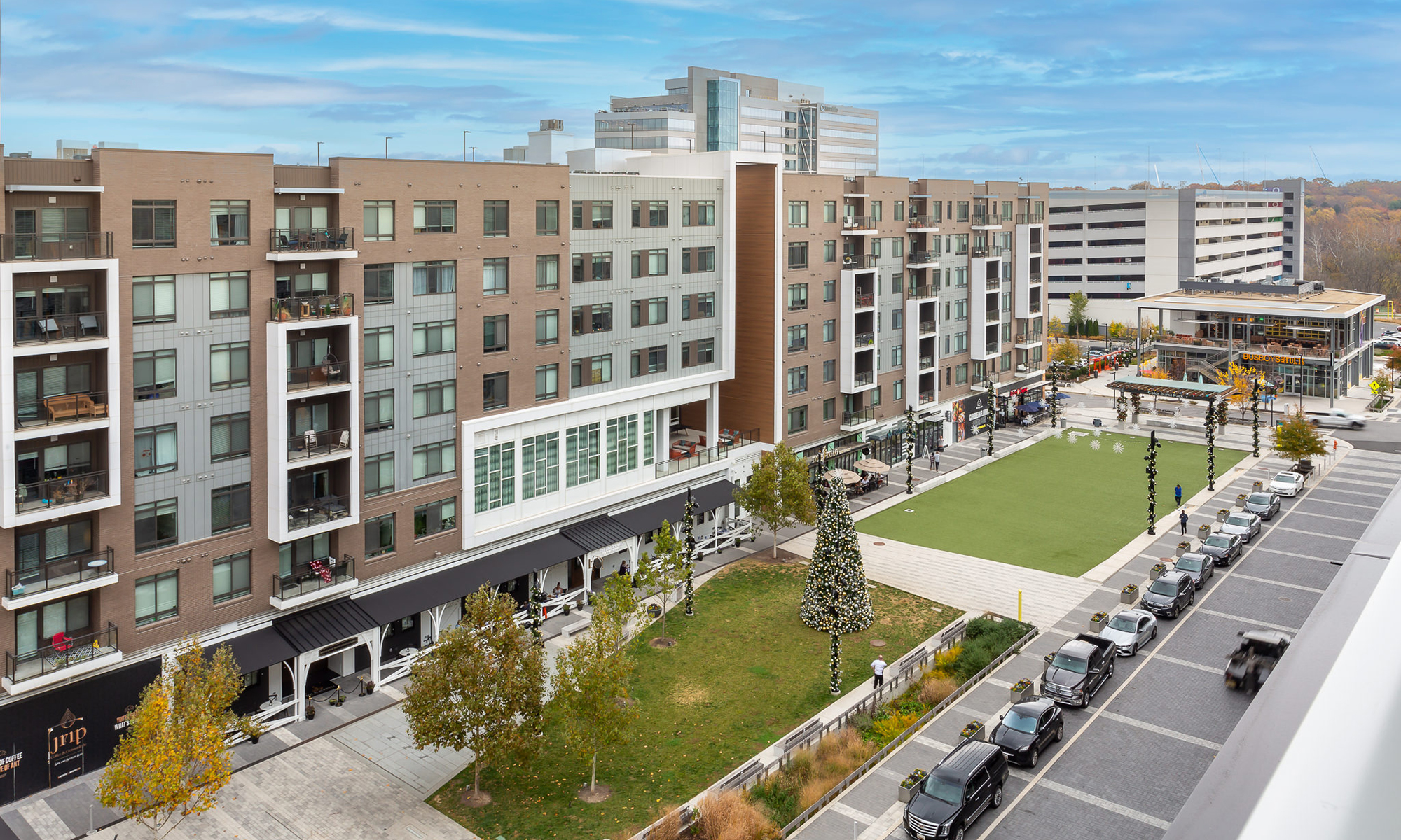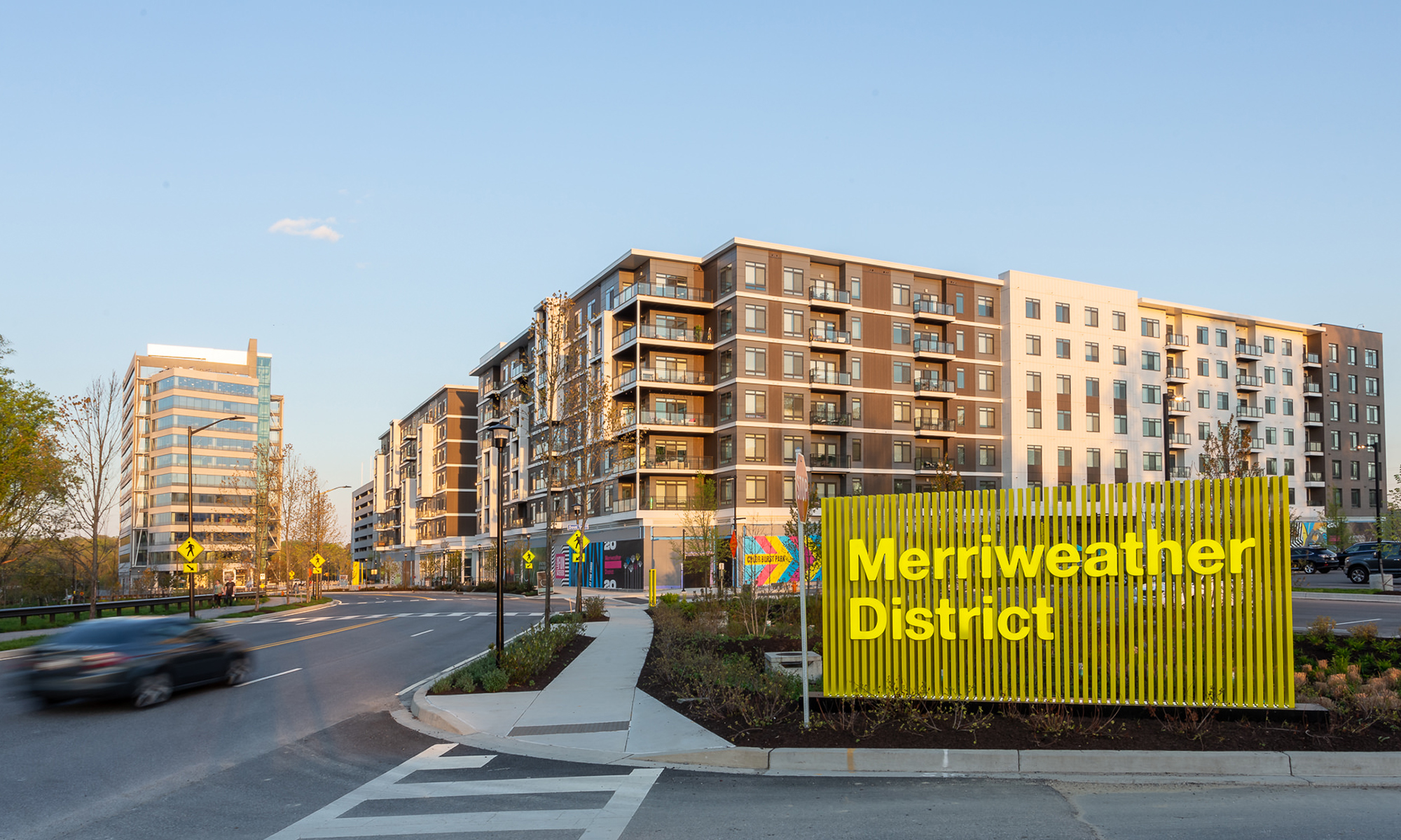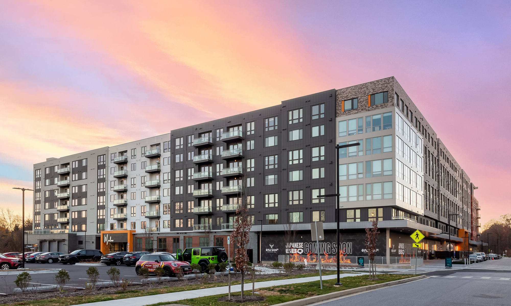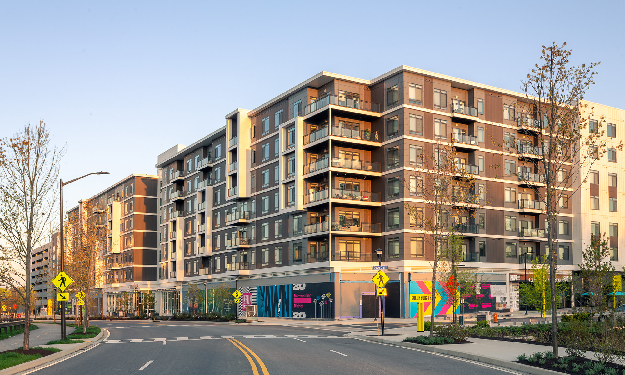 The master planning evolved around the creation of the shared, linear park. The park’s central location provides both orientation and a shared sense of place for all the adjacent buildings in Columbia, Maryland. The park is then linked to Merriweather Drive at both its east and west ends by the primary public roads which lead into the district. These tree-lined roads are designed as outlined in the Design Guidelines to be animated with retail shops and restaurants, and have generous sidewalks promoting pedestrian activity. The project embraces the naturally distinctive context of the Merriweather district neighborhood and is a truly unique collection of residential, retail, office and entertainment space located within a surrounding forest. The buildings draw whimsical design inspiration from local forest inhibitors the “fox” and the “owl.” Marlow (the fox) a visually prominent beacon for the community and is expressive, bold and vibrant. Juniper (the owl) is quiet, calming and serves as a connector to the adjacent outside public symphony. While both buildings are intricately connected to nature, they purposefully juxtapose each other, contributing to a dynamic living environment.