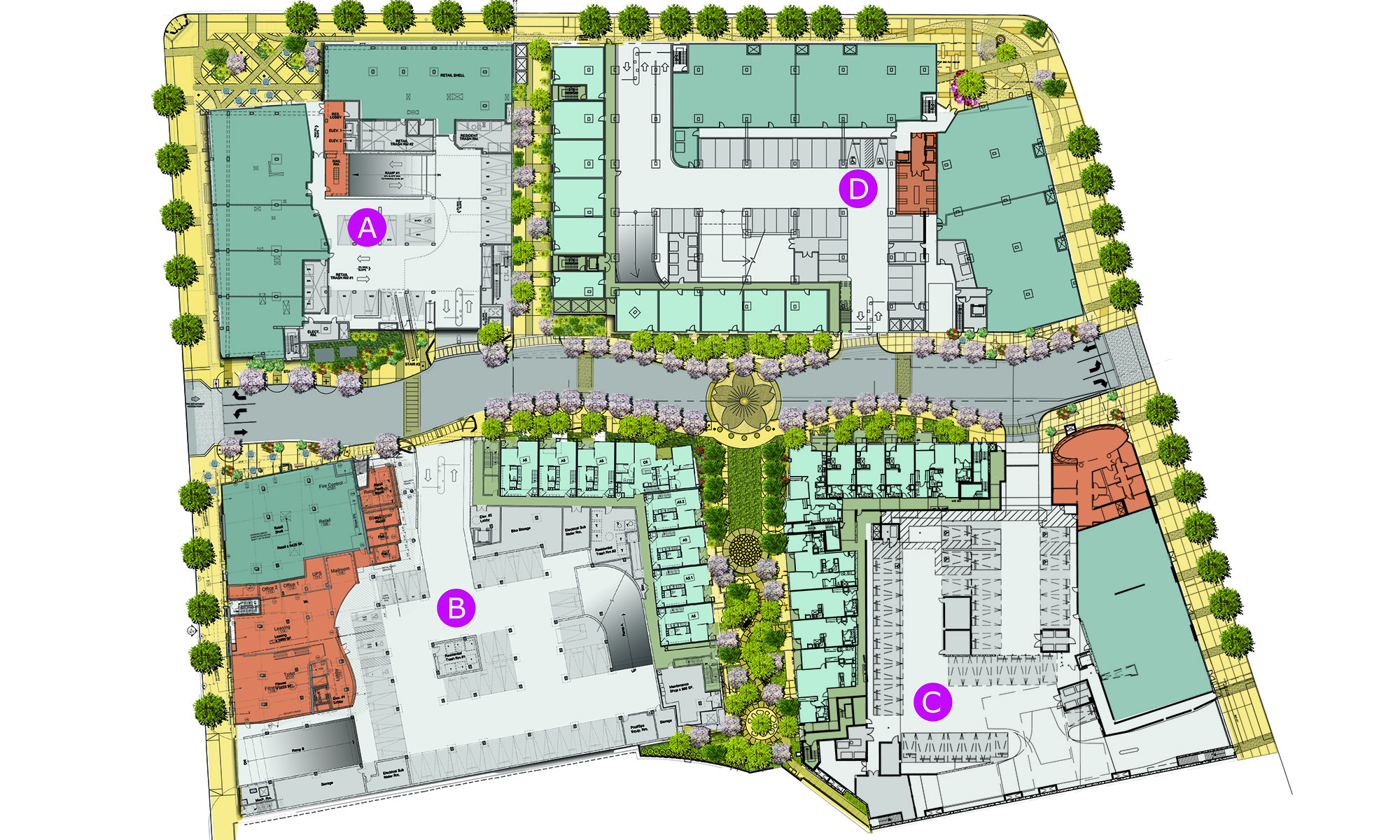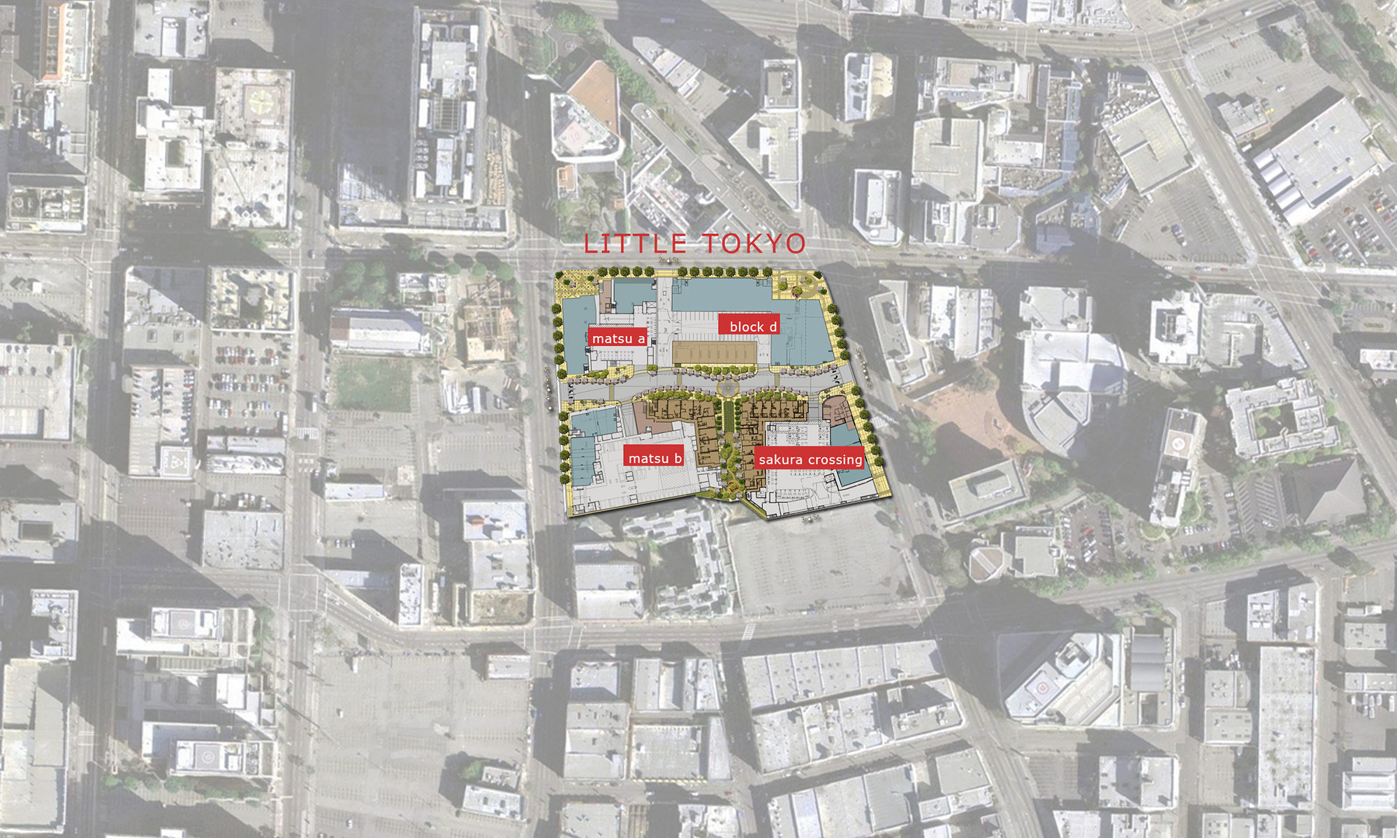 TCA designed and constructed Block 8 – a master plan of 4 individual parcels that seek to restore the urban fabric, life, and vitality of six acres of underused, dilapidated parking lots at the edge of Los Angeles’ Little Tokyo neighborhood. Sakura Crossing (Parcel C) completed construction in 2009 and AVA Little Tokyo (A & B) recently completed construction in 2015. Wakaba (Parcel D) is developed by Sares-Regis Group and upon it’s completion in 2016, the development will provide a total of 750 apartments for a variety of incomes and over 40,000 square feet of retail space. New residents, restaurants, and retail will help link the Little Tokyo area to the energy from the emerging downtown area. Over 650 spaces of public parking will also be included to help support the new and existing retail in the neighborhood. Adjacent to Block 8 is a public library as well as the historic St. Vibiana’s cathedral, recently restored as a performing arts venue. The Japanese American Cultural Community Center, is located to the east and consists of a theatre, a garden, a public plaza, and the World War II memorial—a site of significance to maturing Japanese-Americans.