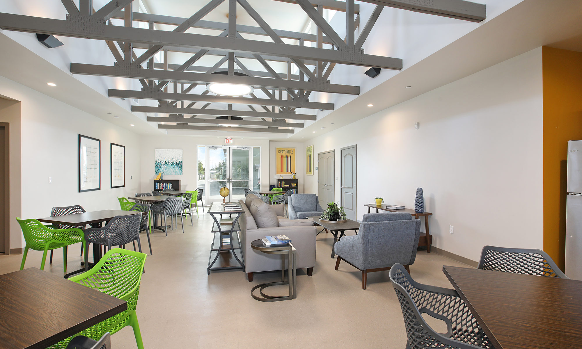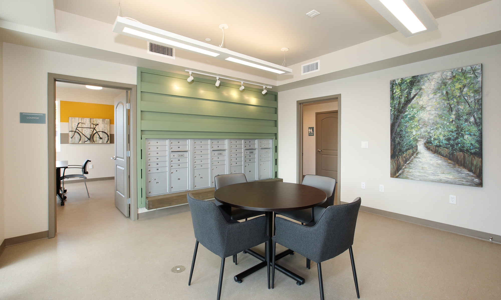 The main “campus,” located on the East building, provides residents of all ages with ample outdoor space, including a tot lot, landscaped sitting areas and edible gardens. There is also a large community room for recreational activities.