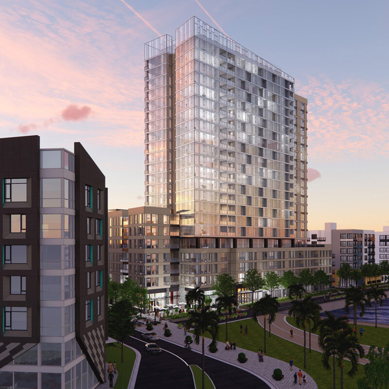 The Residences at Airport Village is a 6-story 444 units luxury apartment building, with 5 levels of residential apartments over 1 level on-grade parking garage and 1 level of subterranean parking. The project will have